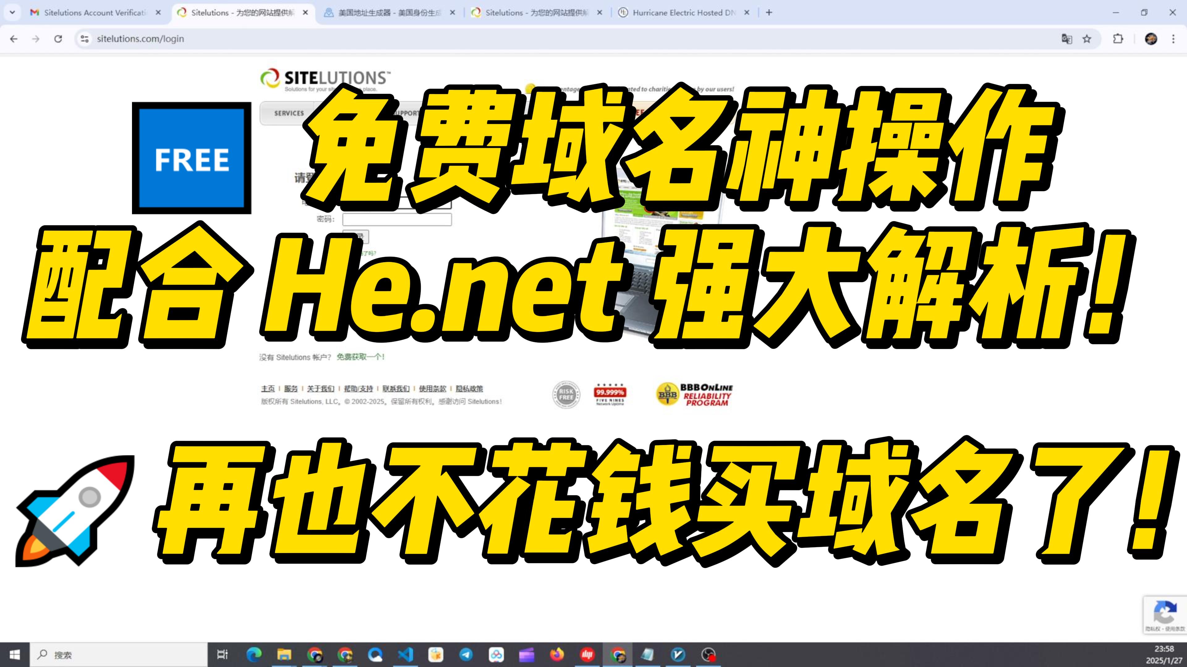 0元拿下一个高级域名!Sitelutions + He.net 解析教程(太香了)