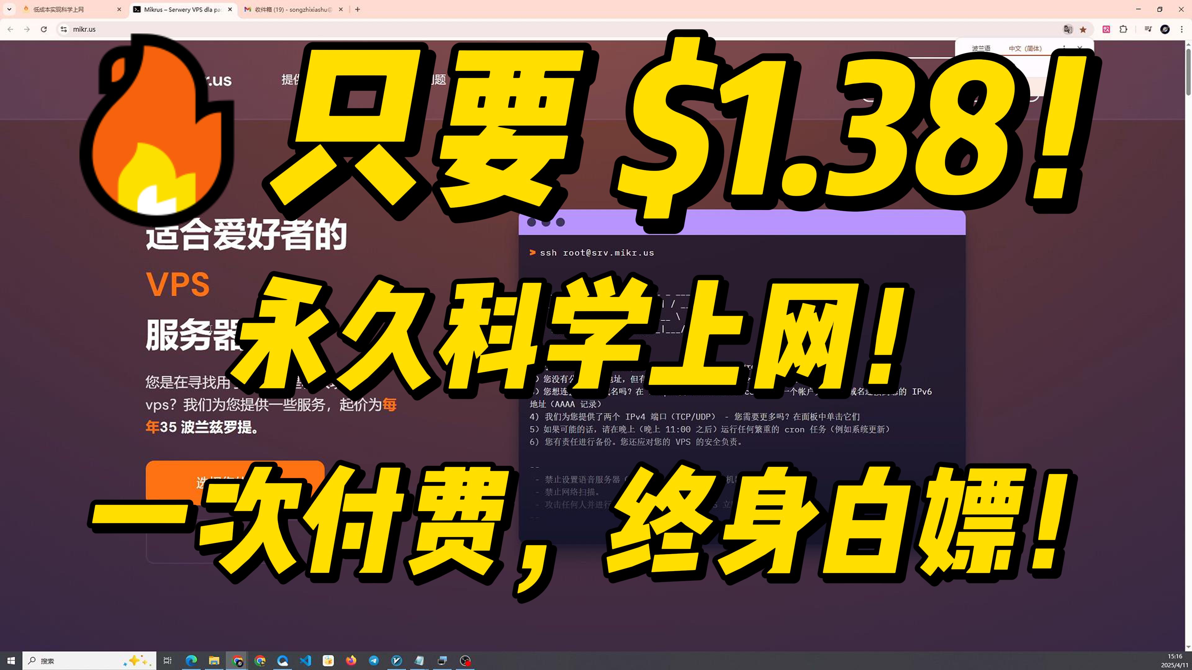 低成本实现科学上网 2026年1月15日2025年4月11日 作者 song mikr网站:https://mikr.us/ 优选ip网站:https://stock.hostmonit. … 阅读更多